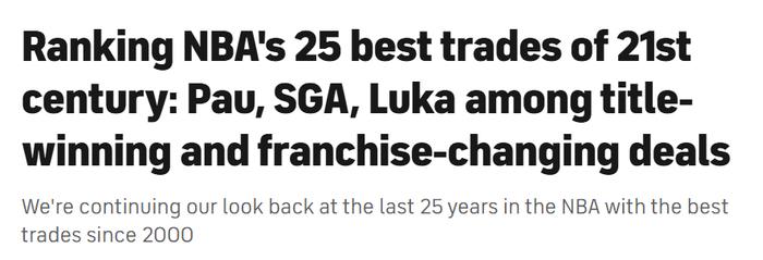 PP电子模拟器官网-美媒评新世纪25大交易:雷霆获亚历山大居首 湖人得到东契奇第15