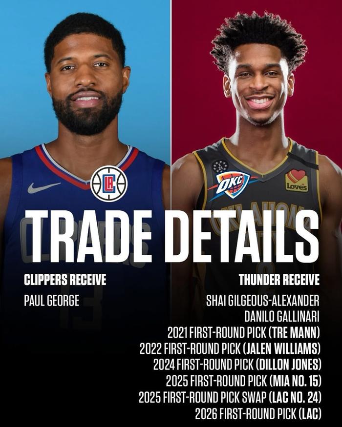1.雷霆从快船换来亚历山大(2019年7月)
