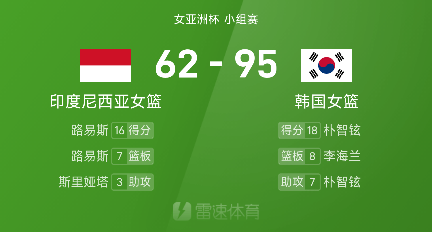 女篮亚洲杯战报:朴智秀18分7助,路易斯16分7板,韩国女篮95-62狂胜印尼 2025-09-07 03:04:02 德甲 131℃ 0 07月16日讯 今日进行的女篮亚洲杯小组赛,韩国女篮对阵印度尼西亚女篮。双方全场战罢,韩国女篮95-62战胜印度尼西亚女篮。朴智铉砍下全场最高的18分5板7助,率领韩国女篮成功取胜。球员数据 查看更多详细数据 查看更多 上一篇:PP电子模拟器官网-一战封神!申花球迷感激于根伟:他是伟大教练,不应该被诋毁 下一篇:【英超】阿马德帽子戏法!曼联3比1逆转南安普敦 相关推荐 【2024中超巡礼之三镇】凯泽斯劳滕转型青年近卫军 哈维做对了什么巴萨四年后再进八强? 佩奇引用库里推特激励球队:我们要相信自己&用正确的方式做事 再次斩获进球,海港外援莱昂纳多社媒庆祝:重要的3分